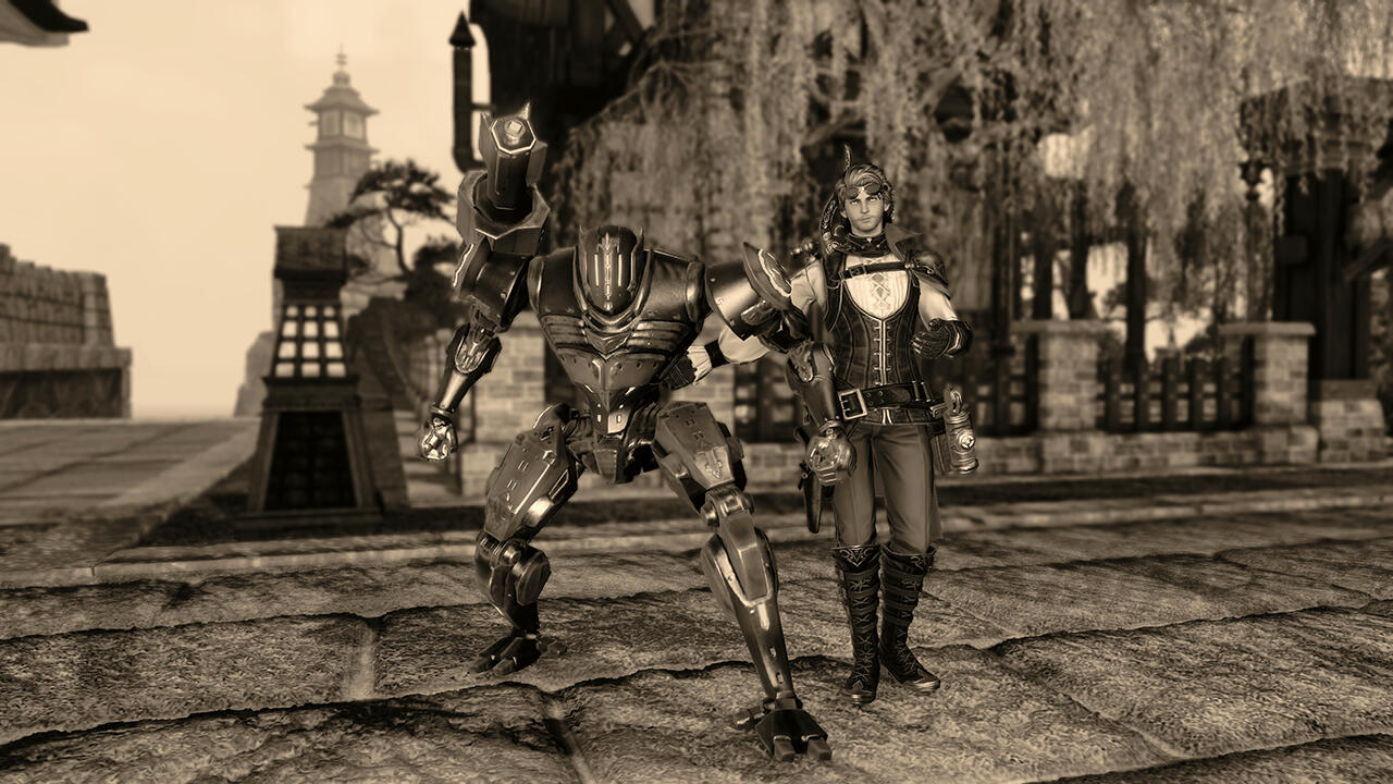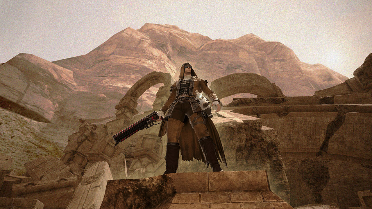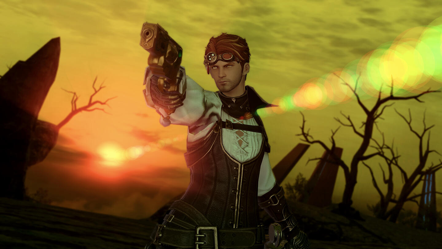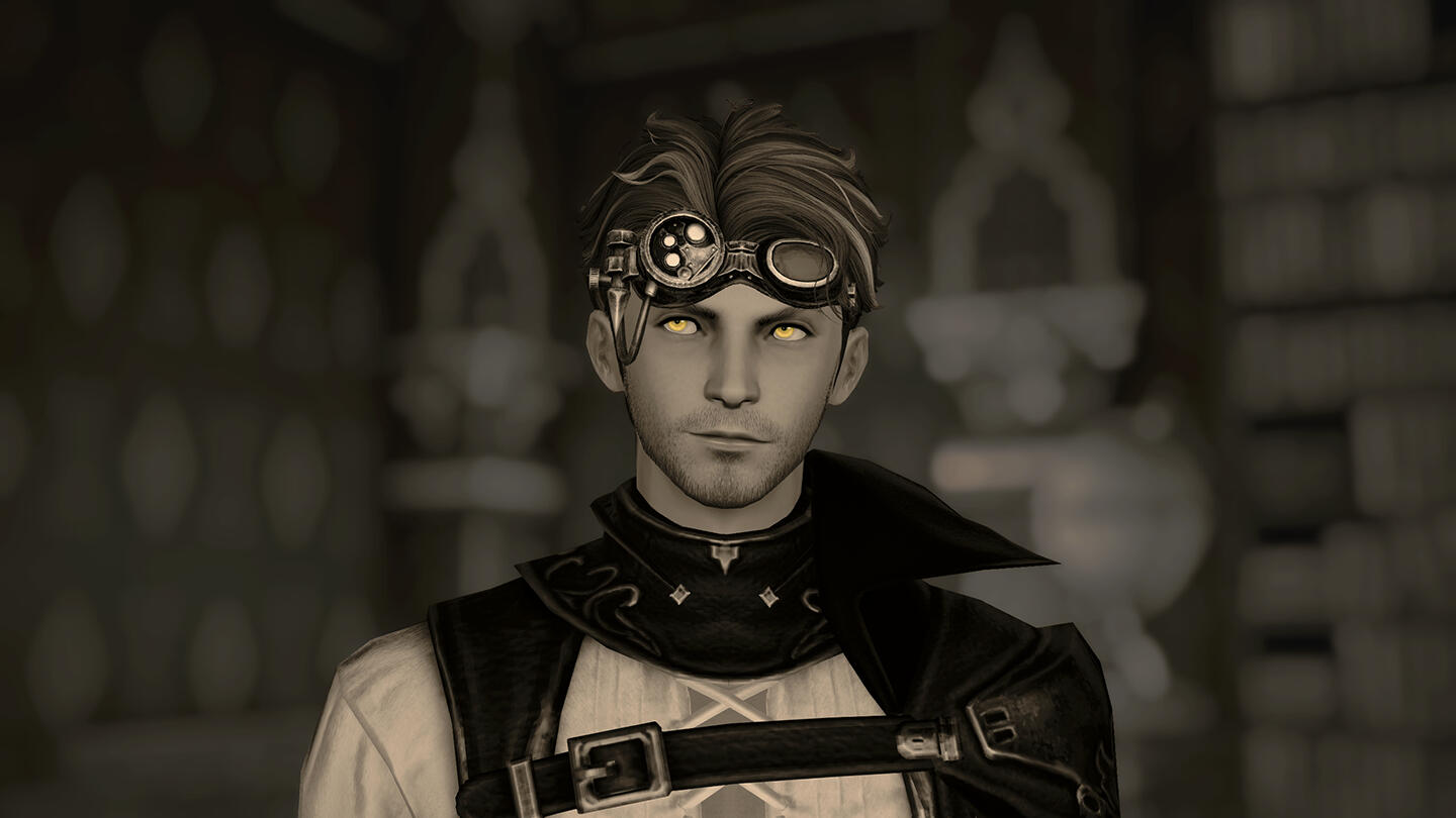You know a piece of land is worthless when none of Eorzea’s territory-hungry city-states can be bothered to claim it.Such was long the case with the Carteneau Flats. A peninsula on the west coast of Aldenard situated southwest of Mor Dhona and northwest of Thanalan, Carteneau could at best have been called “nowhere” even before the Calamity. Yawning steppes of dense, untillable ground yielded little in the way of vegetation apart from the odd gnarled tree or reedy scrub. Unforgiving mesas and latholiths of rock littered the terrain like vast tombstones and sarcophagi. Nauseous beasts and monsters roamed free, unmarked by any soldier’s eye. The great nations saw little profit in annexing this remote, blighted territory, and so it lay for hundreds of cycles, with no human residents.…So the official records of the city-states allege. But while the Flats were a dangerous challenge to human life, they were not uninhabitable… and wherever men may survive, they will inevitably settle. What’s more, those who would elude the outstretched palm of the tax collector or the watchful gaze of the lawman may find any lawless land irresistible, no matter how treacherous.Thus it was that unknown to most Eorzeans and disregarded by the rest, a sprinkling of huts, hovels, and tiny enclaves secreted themselves amid the cliffs and outcroppings of Carteneau, lingering out of sight of the world for generations, too few in number for any government to trouble itself with.The jewel of these settlements, if such a term could be unironically applied, was Brazemoor, a spacious, low-slung manor house built into the concave side of a mesa half a malm from the Cinderfoot River. Brazemoor was built by and was the ancestral home of the Raskes, a noble family of Hyur Midlanders dedicated to the pursuits of science and invention.Unlike most of the scattered residents of the peninsula, the Raske family chose the Flats as their home not to escape the law or the treasury—though in their endeavors they certainly benefited from the absence of both—but instead to reap a unique harvest.The family had chanced to discover a secret that was lost to every other soul in the realm until the end of the Seventh Umbral Era: an immeasurable wealth of ancient Allagan technological artifacts, buried beneath Carteneau’s intractable plains and scarpments. Everything from tiny parts and trinkets to large, sophisticated machines at whose purpose one could only guess lay waiting to be unearthed, holding the amassed knowledge of the most advanced civilization ever known.In addition to creating new devices from scratch as they always had done, the family discreetly excavated sites around the Flats and utilized what they found in a number of their inventions… recycling, retrofitting, and reverse-engineering the relics to create more advanced machines and gadgets. A Raske device gradually came to be coveted by many highly placed individuals in the city-states, unrivaled by any other both in form and in function. In this way the family grew modestly wealthy, and moved freely about the higher echelons of Eorzean society when they traveled forth from Brazemoor with their wares.The peninsula was prowled by dangerous creatures and occasionally by bandits and speculators, and the absence of a government also meant the absence of a peacekeeping force. Cartenuvians quickly learned to defend themselves, and in this too the Raskes developed unsurpassed skill and ingenuity. The arts of gunplay and machinistry were barely more than theory in those days, but the Raskes built and used their own firearms, teaching all of their children marksmanship and the construction of guns, turrets, and other defensive weaponry. As a noble clan they also trained extensively in the combat arts of gentlemen, such as boxing and fencing, and even employed some light magecraft. With these abilities at their disposal, they were able to fight and defend Brazemoor from any monsters, raiders, or rivals who would seek to lay waste to what the family had built.Alas, men and women so absorbed in their work tend not to be prolific in the act of expanding the bloodline. By the time of the Garlean invasion and Dalamud’s descent, the house was inhabited by just four people: the heads of the household, Vertus and Edwina Raske, their teenaged son, Ramius, and their paid servant, I'bensho Tia.As soon as it became clear that the Carteneau Flats would be the staging ground both for the battle against Garlemald and for the lesser moon’s impact, most Cartenuvians began to flee north into Mor Dhona or to cross the Cinderfoot into Northern and Central Thanalan. Vertus and his wife gave custody of Ramius over to I'bensho and commanded him to flee with the boy northward by sea, up the Strait of Merlthor and across the Indigo Deep and the Bloodbrine Sea to Old Sharlayan, where their only son would be safe at least from the Garleans.However, they themselves refused to cede Brazemoor. The family had defended it for generations, it was Ramius’ birthright, and both father and mother agreed that they would be thrice damned if they would surrender it now: not to the Alliance, not to the Empire, and not to the Dreadwyrm. At Brazemoor they would remain, and protect the estate from any force that would attempt to rob them of what their ancestors had built.Neither the son nor the servant were in a position to dissuade them from such folly. And so, as the smoke lifted from the Seventh Umbral Calamity and the world began to take stock and to rebuild, no further word arrived at Sharlayan from the manor upon Carteneau.Ramius returned at last to Brazemoor five cycles later, having enrolled at the Studium and honed his own craft among the Sharlayans in the intervening time. He had long since had word of his parents’ demise, and the devoted family servant had passed some five moons prior. The rage of Bahamut had reduced the manor to mostly rubble. Some portion of the structure remained intact